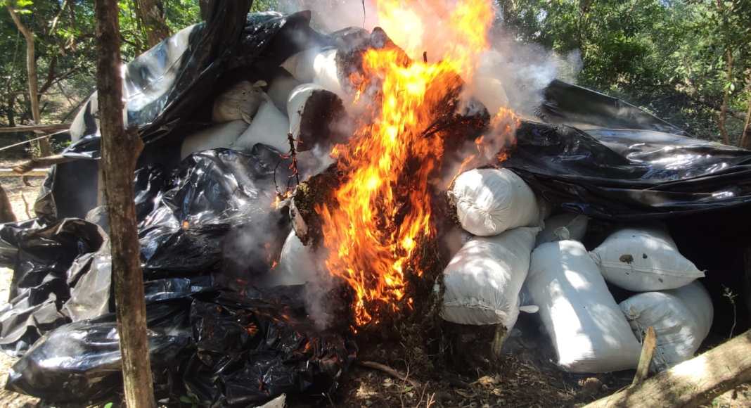 En un operativo conjunto entre la Policía Nacional y la fiscalía en la zona donde fueron asesinados tres efectivos policiales, encontraron 11.200 kilos de marihuana, se procedió a la destrucción.